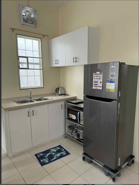 Modern Kitchen – equipped with a brand-new refrigerator and microwave oven