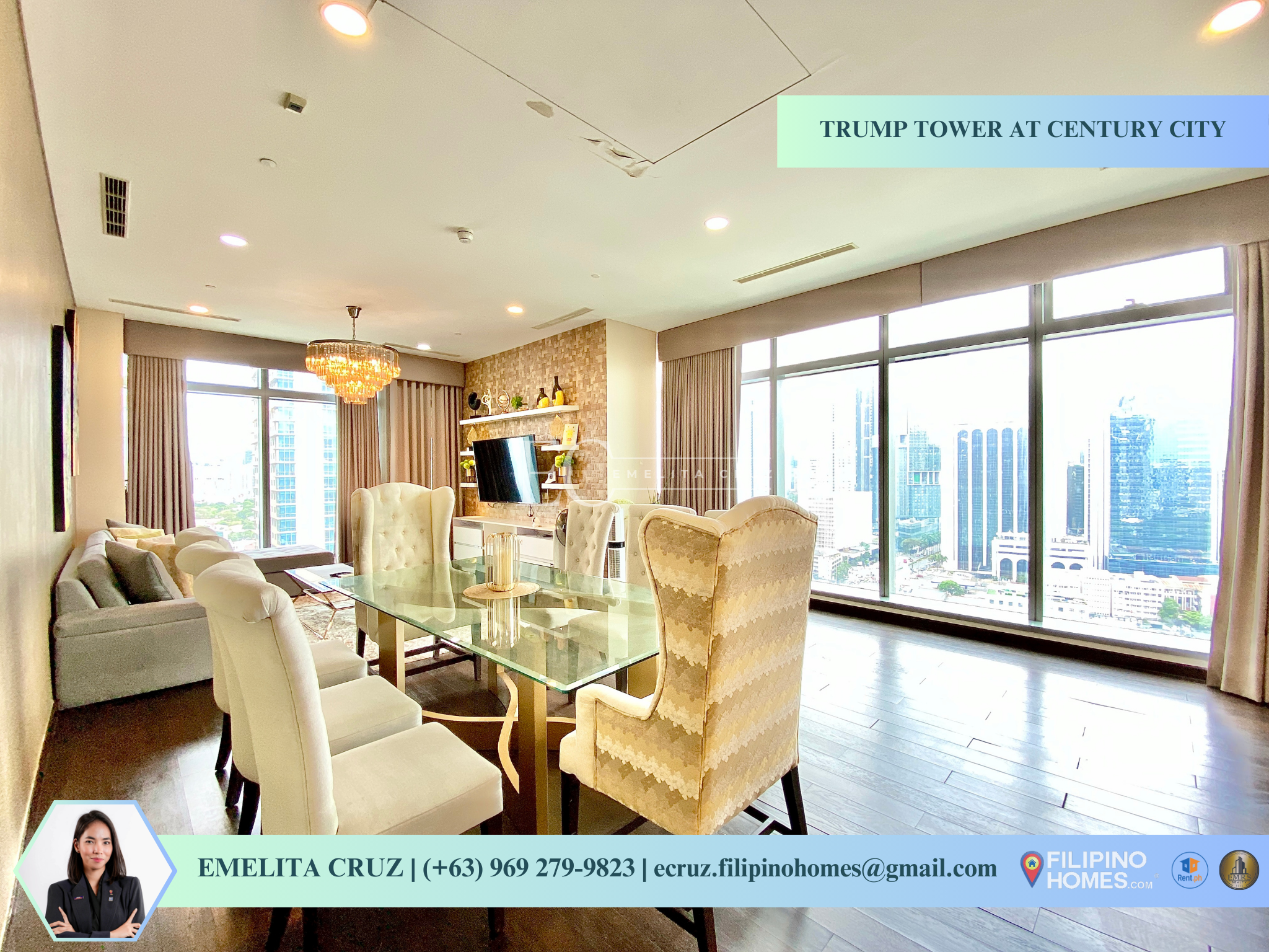 Expansive floor-to-ceiling windows with panoramic Makati skyline views