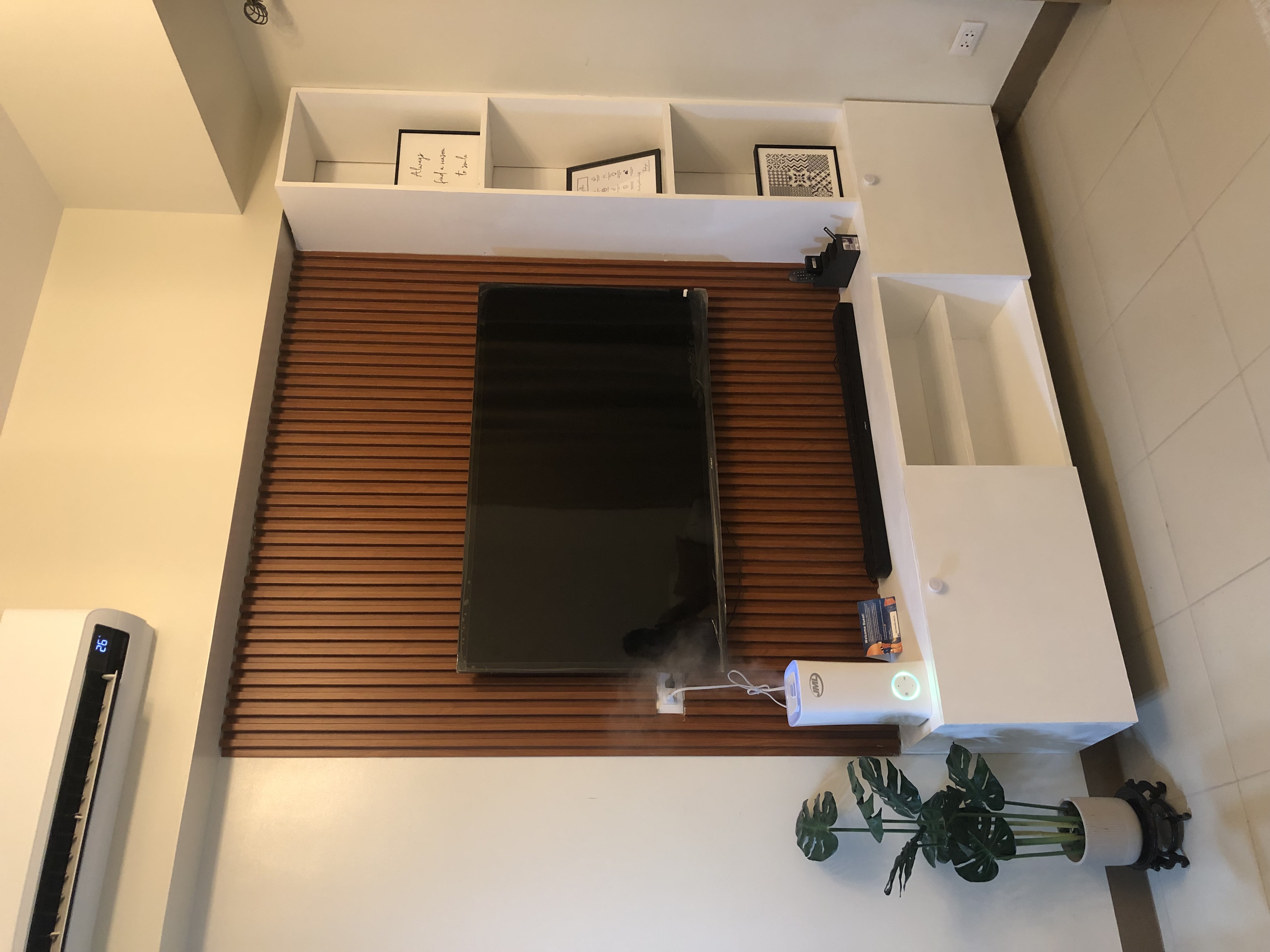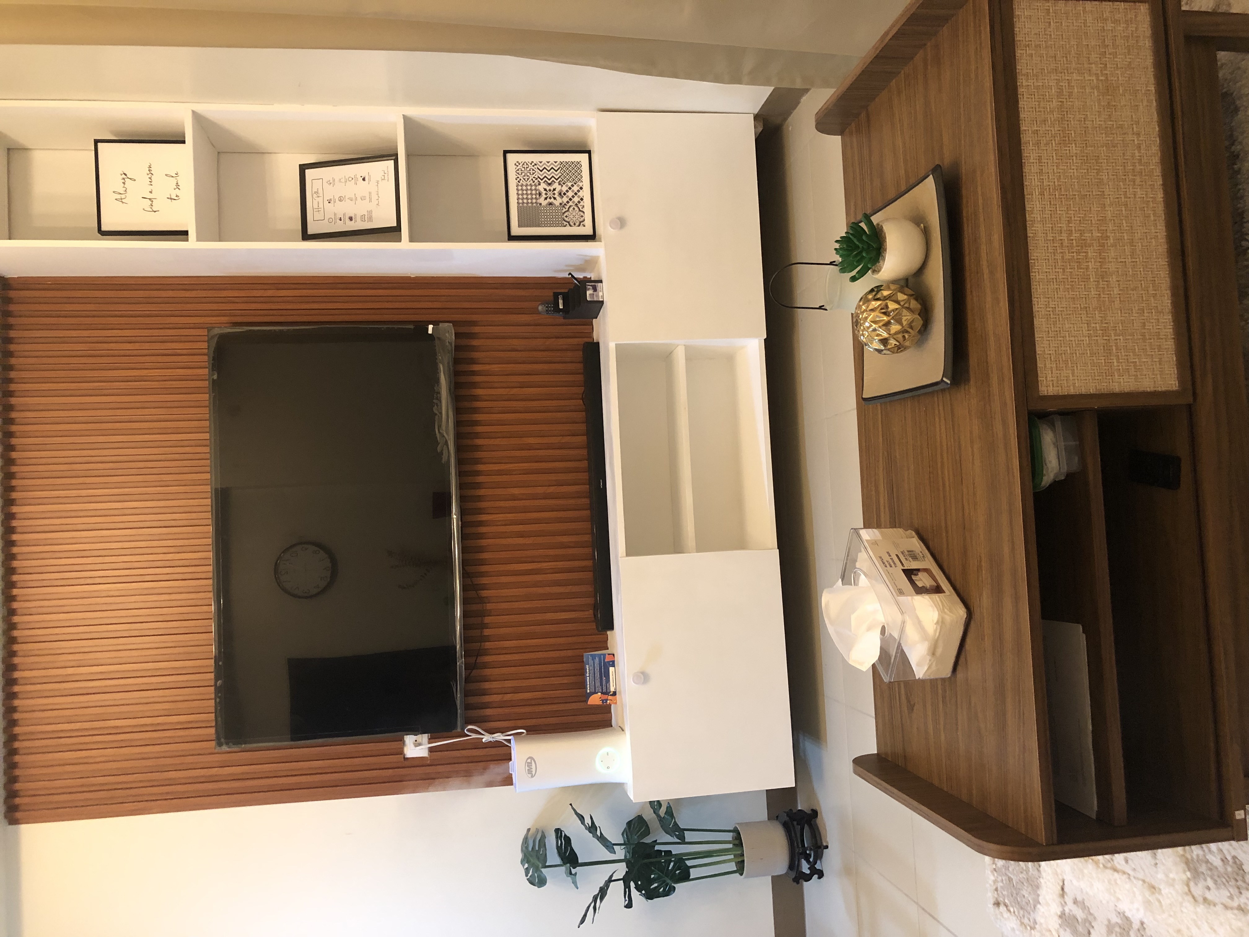 ✅LIVING AREA-soft touch,smart TV, shelves, mood lighting