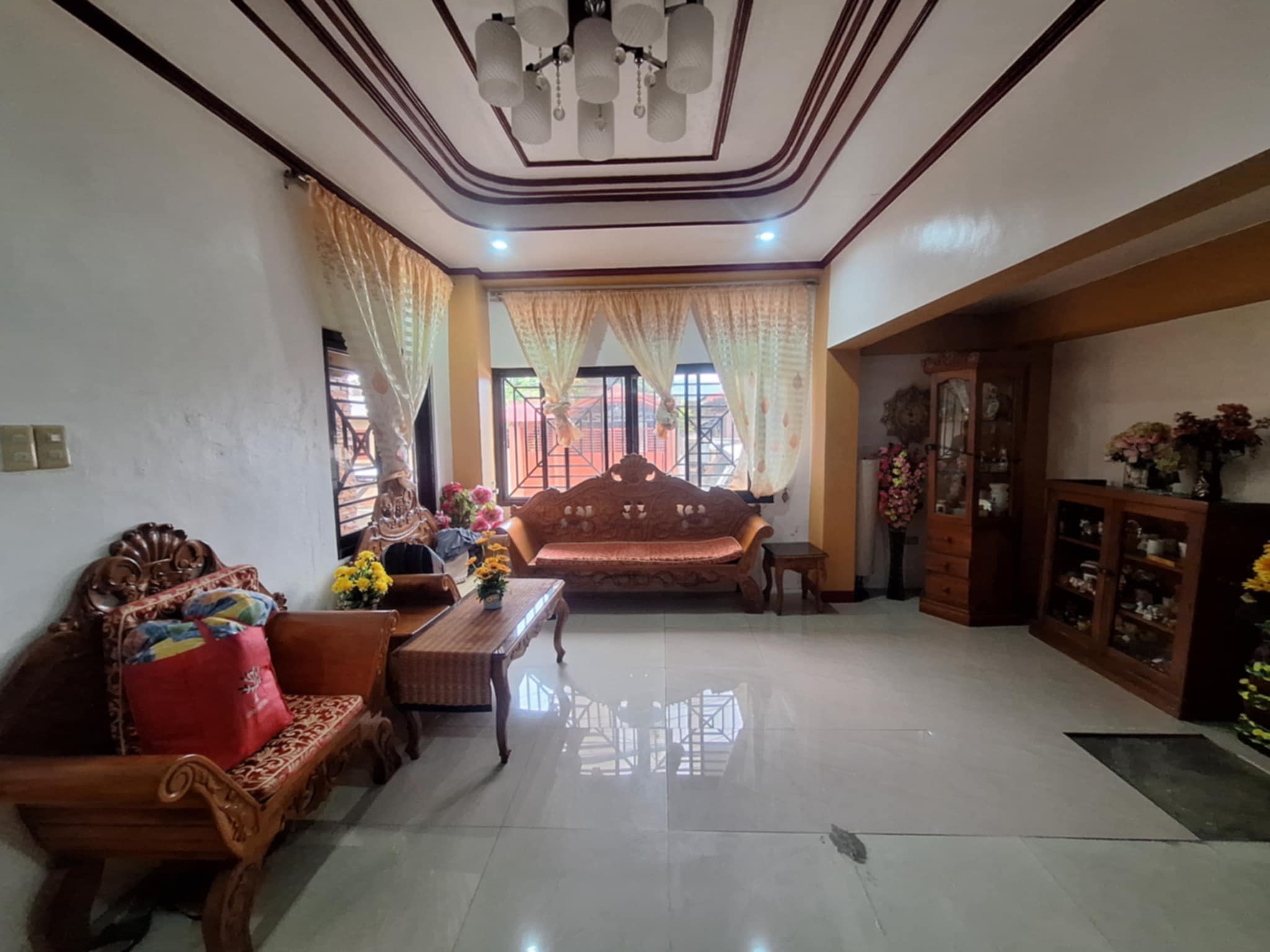 ✅ Bright living area with elegant wooden furniture