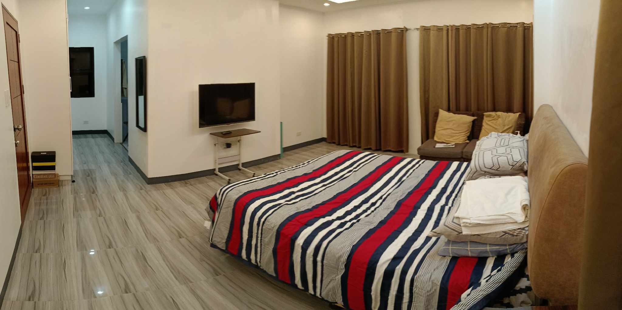 ✅Location: Bag-ong Silingan Kona Villas, Mactan Lapu-Lapu City (In the heart of Mactan) ✅ Lot Area: 172 sqm ✅ Floor Area: 202 sqm ✅ 4 Bedrooms: (1 Master bedroom) (2 Guest rooms) (1 Maiden's Quarter) ✅Master bedroom complete with: - walk-in closet - personal bathroom and washroom with bath tub - 1.7 x 5.2 meter balcony ✅all bedrooms equipped with personal closets ✅3 Restrooms ✅Spacious Living and Dining Area ✅Parking Area: Designed for 2 Automobiles ✅4 x 1.4 meter laundry/utility area ✅1.8 x 17 meter botanical garden(right side) ✅1.2 x 17 meter botanical garden(left side) ✅Complete utilities ✅High Ceiling (2.9 Meters) ✅Modern Design ✅Clean papers ✅Ready for Occupation ✅fully furnished ✅Fully air conditioned rooms Date of Construction: Jan 2021. Date of Completion: May 2021 Landmarks: 3 minutes trip from Mactan Newtown 5 minutes trip from Mactan Shrine 15 minutes trip from Emerald bay resort 15 minutes trip from Mactan Airport Freebies: ✅Brand new 110k matching dining and Sala set ✅Brand new Light Accessories and Chandeliers ✅Brand new (2) Split type Air-conditioning Unit 60k per month, 1-year agreement