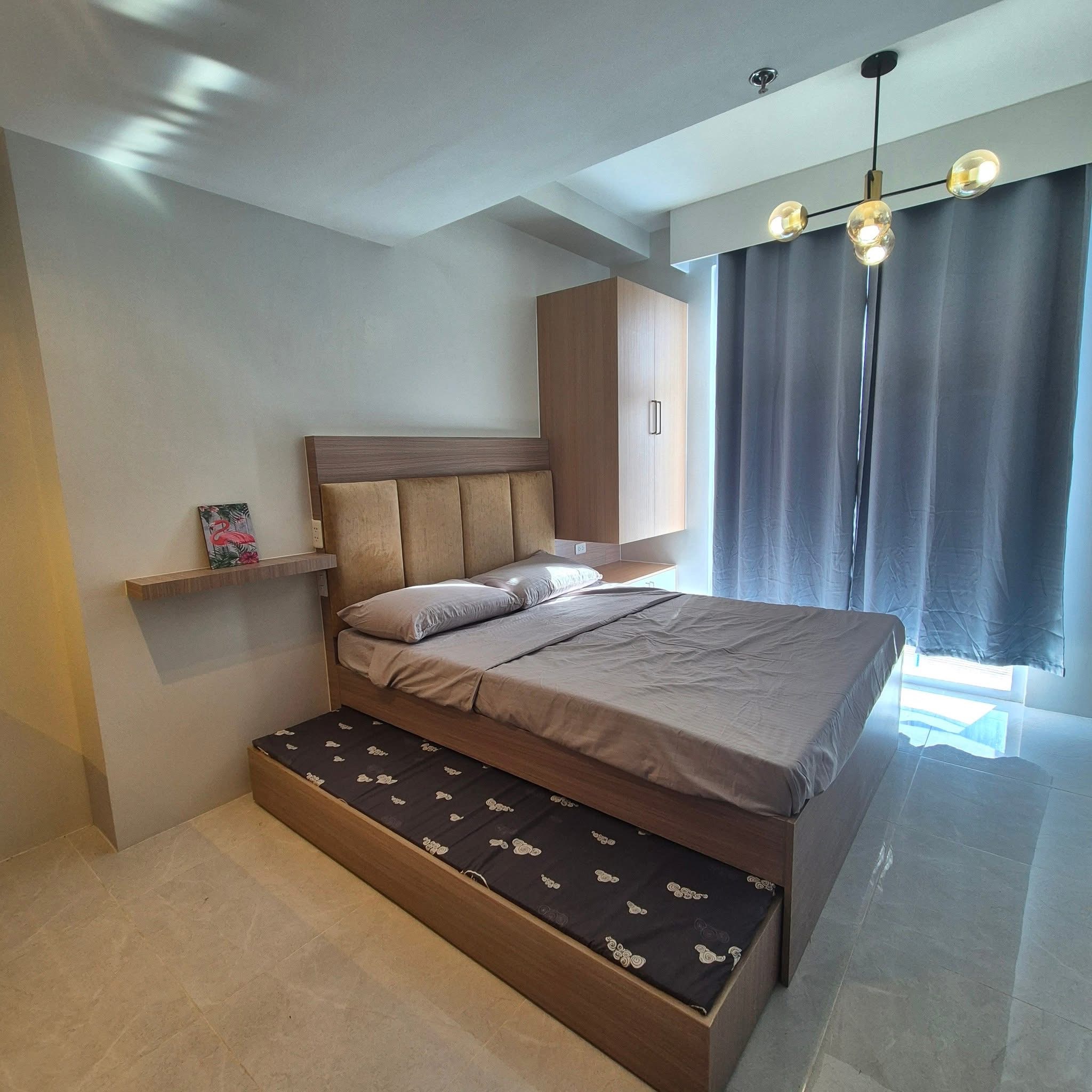 ✅ Fully-furnished [55-inch flat-screen TV, Fridge, Aircon, Microwave Oven, Induction Cooker, Water Heater, Pull-out Bed with Sheets]